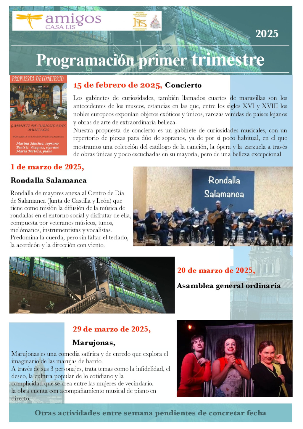 Estas son las actividades que la Asociación propone para el primer trimestre del año 2025: