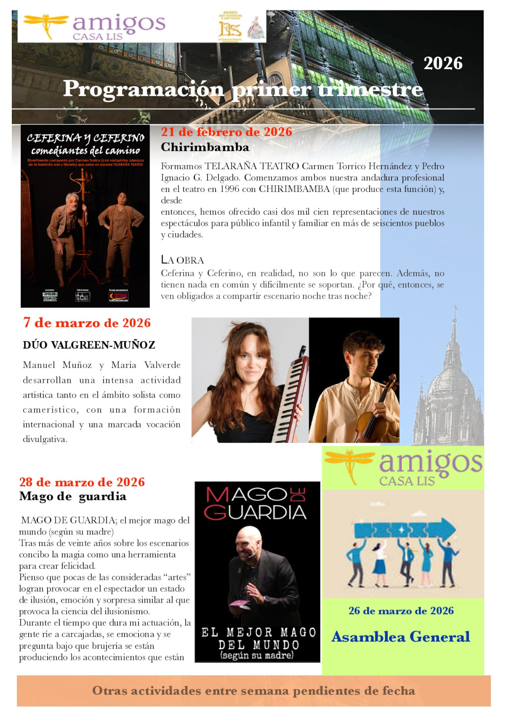 Estas son las actividades que la Asociación propone para el primer trimestre del año 2026: